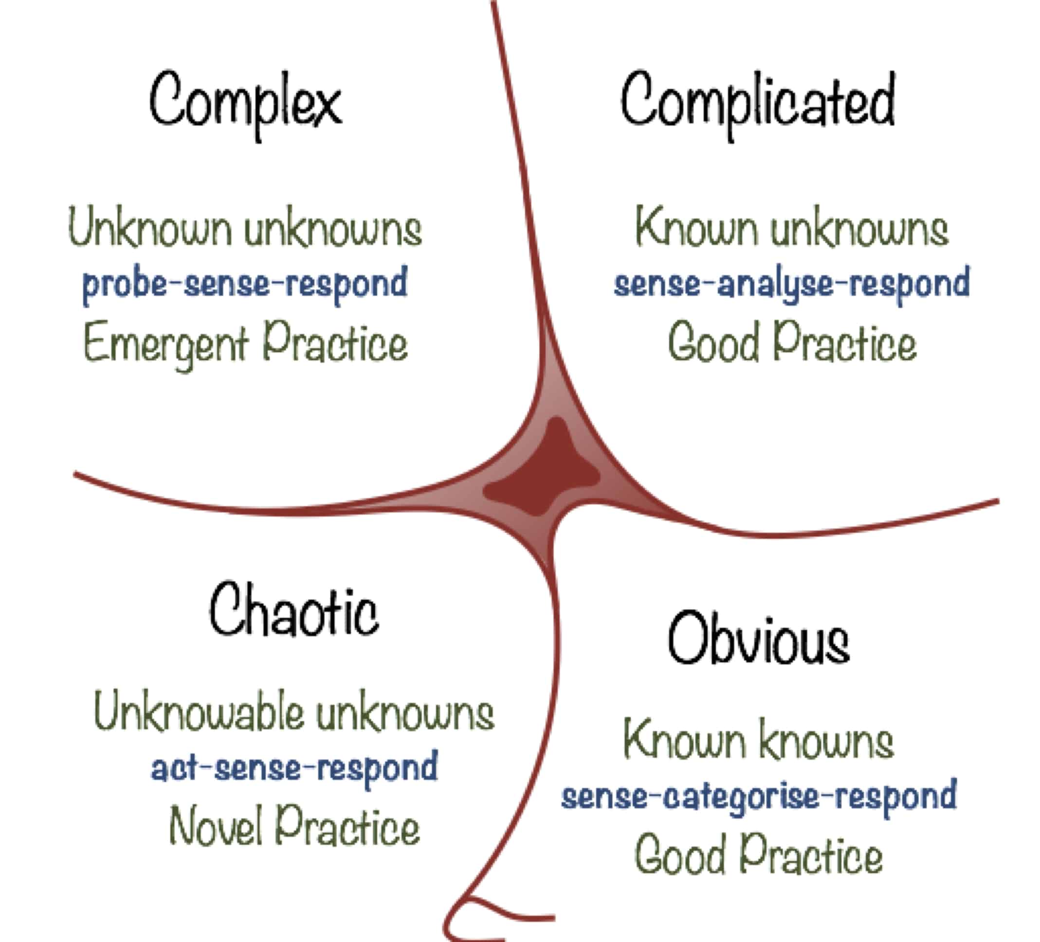 However, if you have new-to-agile teams, who don't know the product domain, who are geographically distributed or dispersed from one another, and you want to transition to agile, do you see that you might be in the Chaotic part of the framework? That you have no way of knowing the risks?